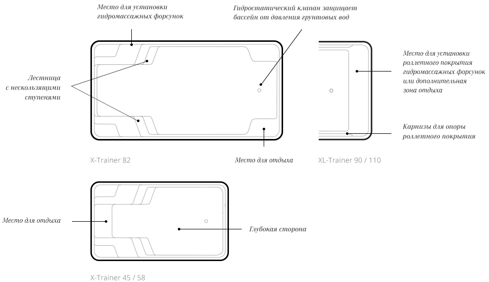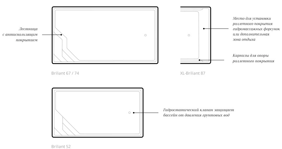 Но главное — запатентованная сверхпрочная керамика Ceramic Core. Она делает корпус лёгким и прочным, защищает бассейн от осмоса — то есть, не позволяет воде просочиться во внутренние слои чаши.